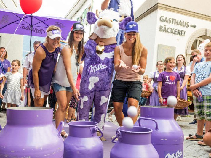 7.07.2018 Die Skistars Anna Veith, Michaela Kirchgasser und Tina Maze sind beim Milka Schokofest im Zentrum Bludenz die großen Publikumslieblinge.