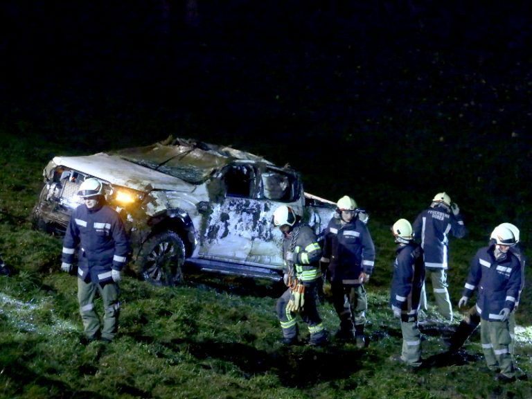 12.11.2023 Der Pickup kam von der Straße ab, beide Insassen wurden verletzt.