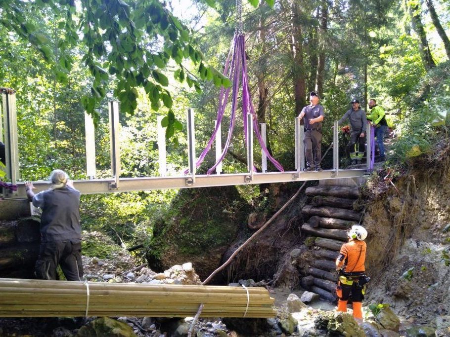 26.09.2024 Gemeindeübergreifende Wanderwegbrücke kam per Helikopter.