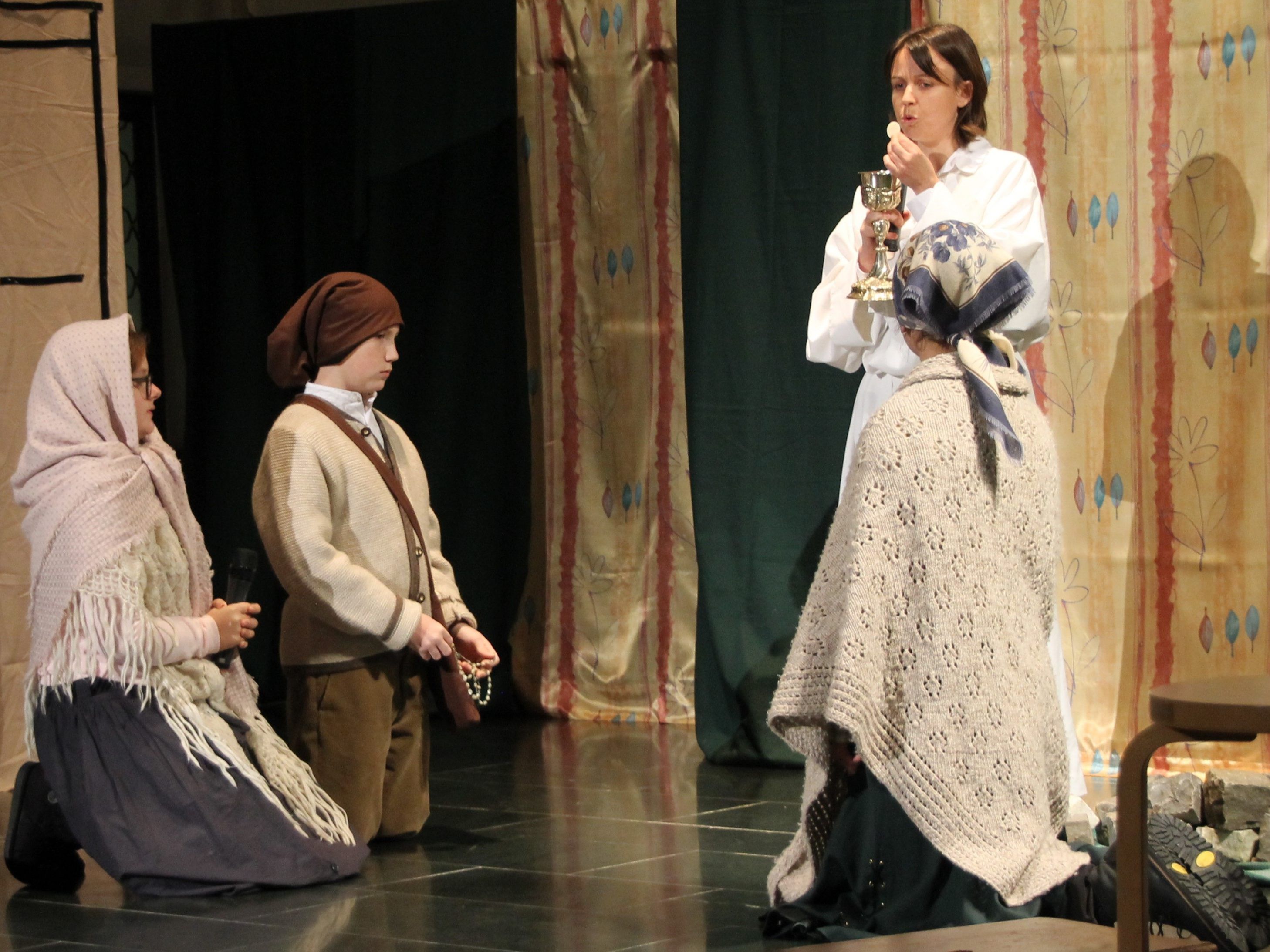 11.12.2017 Priorin Sr. Andrea Rusch und Sr. Agata Teresa Wierdak begrüßten die Gäste in der Klosterkirche des Dominikanerinnenklosters zum Theaterstück „Botschaft von Fatima“, das zum 100jährigen Jubiläum der Marienerscheinung aufgeführt wurde.
