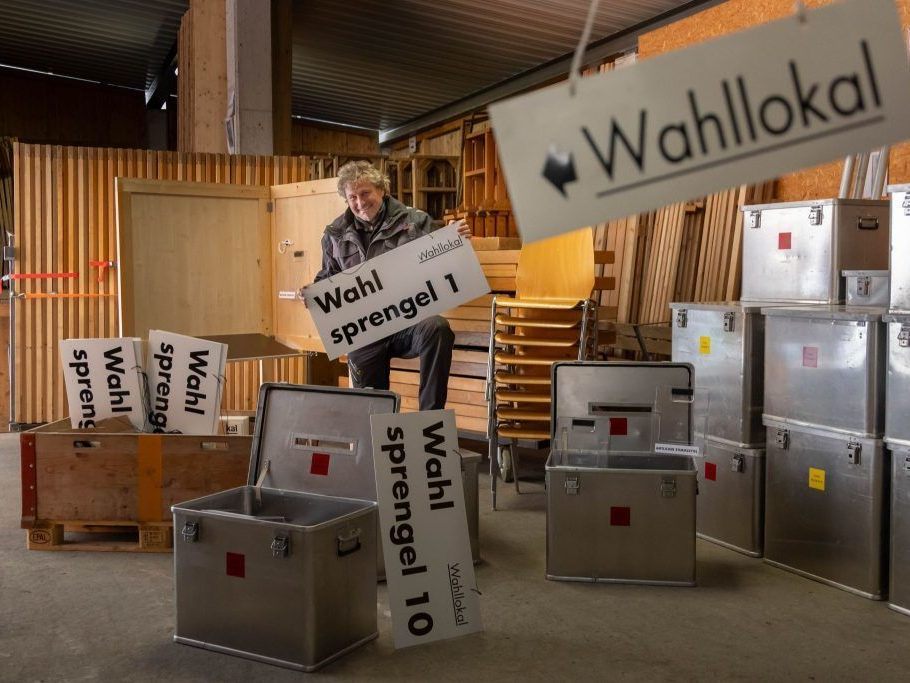15.03.2025 Alban Nachbaur arbeitet seit acht Jahren beim Bauhof der Stadt Feldkirch und hilft beim Aufbau der Wahllokale mit.