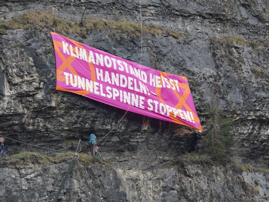 Klettern statt kleben: Umweltaktivisten hängen in Feldkirch ab