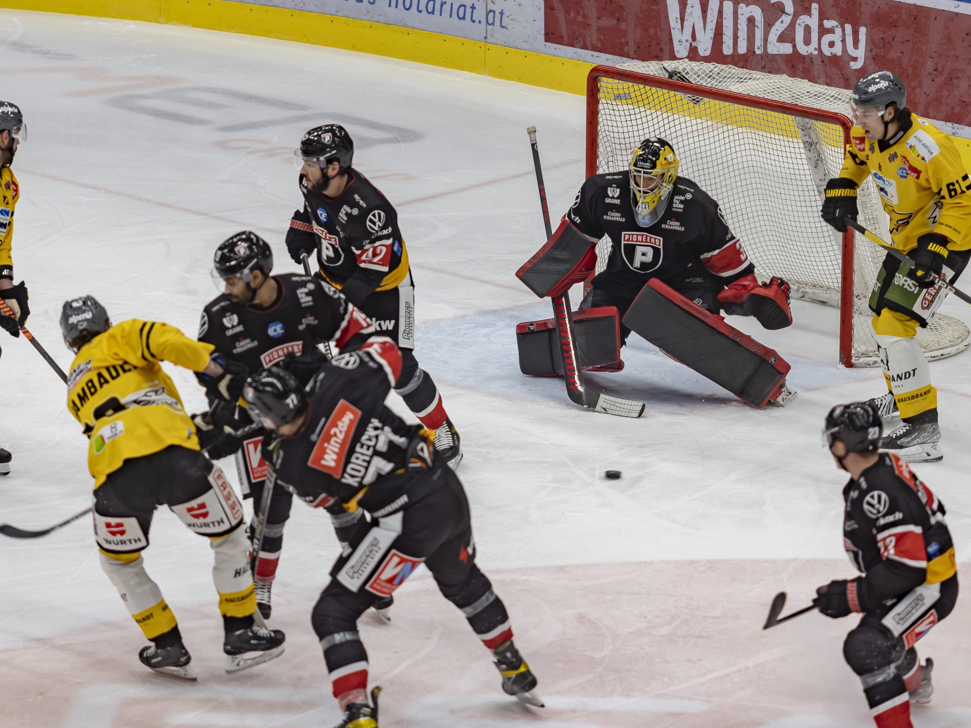 24.01.2023 Überraschender 3:2-Heimsieg von Pioneers Vorarlberg gegen Fehervar.