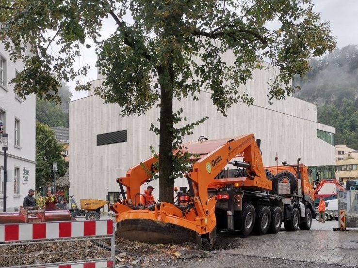 11.09.2025 Mit einem Spezialgerät aus Deutschland wurde eine Linde am Gymnasiumhof in Feldkirch versetzt. Der Baum musste den Bauarbeiten im Zuge der Innenstadtsanierung weichen – doch gefällt werden sollte er nicht.