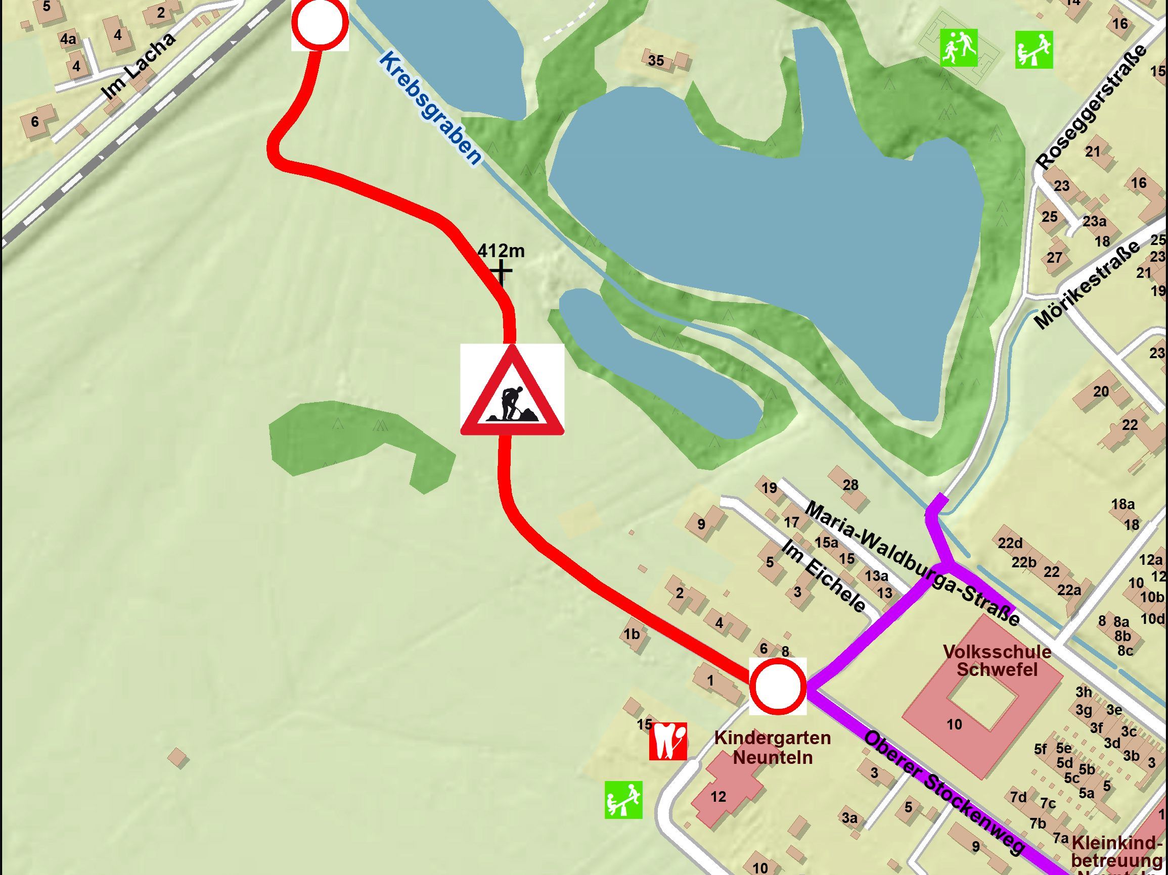 28.07.2020 Bis voraussichtlich Mitte September ist der untere Bereich des Oberen Stockenweges (Bienenlehrpfad bis Bahnunterführung) aufgrund des Ausbaus des Radweges allgemein gesperrt.