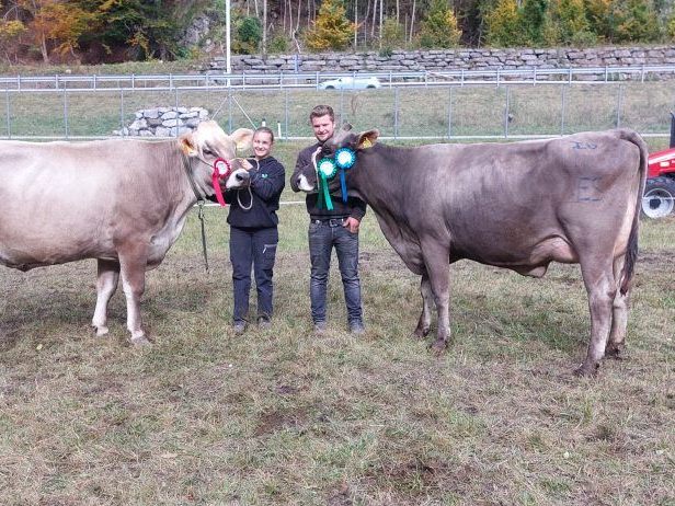 22.10.2024 Innerbraz Auf der Allmein „Engel“ präsentierten Klostertaler Landwirte bei spätsommerlichen Temperaturen insgesamt 86 Stück Vieh und ließen sie von den Preisrichtern Clemens Nigsch und Selina Moosmann bewerten. Die Landwirte und Zuschauer der interessanten Viehausstellung konnten die Rassen Jersey, Holstein und Brown Swiss im Ring bestaunen. Besonders die Vorführung der Kälber durch die Nachwuchs-Landwirte hatten es