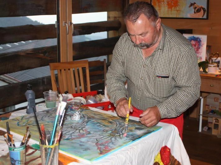 28.10.2025 Der Laternser Künstler Adam Keckeis eröffnete seine vielseitige Ausstellung in Koblach.