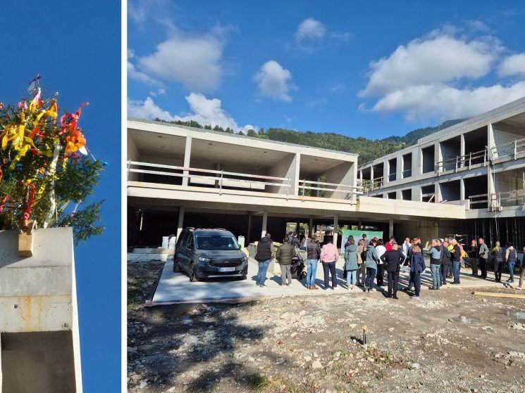5.10.2025 Der Rohbau steht: In Ludesch wurde die Firstfeier des neuen Kindercampus begangen. 2027 ist die Eröffnung.