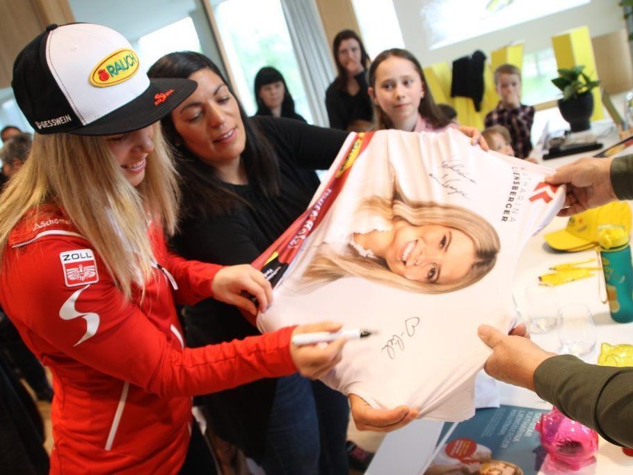 19.05.2023 Spitzensportlerin nahm sich in der Raiffeisenbank Vorderland in Sulz Zeit für ihre Fans.