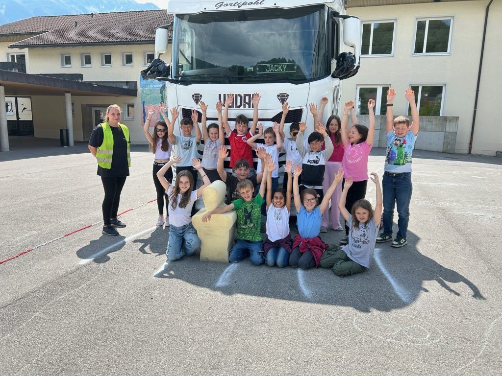 16.06.2025 Die Schüler der Volksschule Tschagguns erlebten hautnah die Gefahren des Toten Winkels.