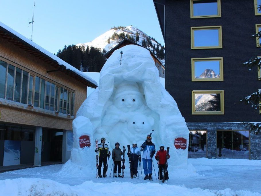 27.01.2025 "Wir haben aus dem Vorjahr gelernt und für die Eisskulptur einen Schutzschirm aufgebaut", erklärt der Lechtaler Holzschnitzer Ernst Schnöller alias "Schnully" zu seinem vergänglichen Kunstwerk aus Eis, das in Warth an schattiger Stelle zwischen Gemeindezentrum und Hotel Biberkopf errichtet wurde und für unzählige Urlauber ein willkommenes Fotomotiv bildet, um es für die Daheimgebliebenen zu