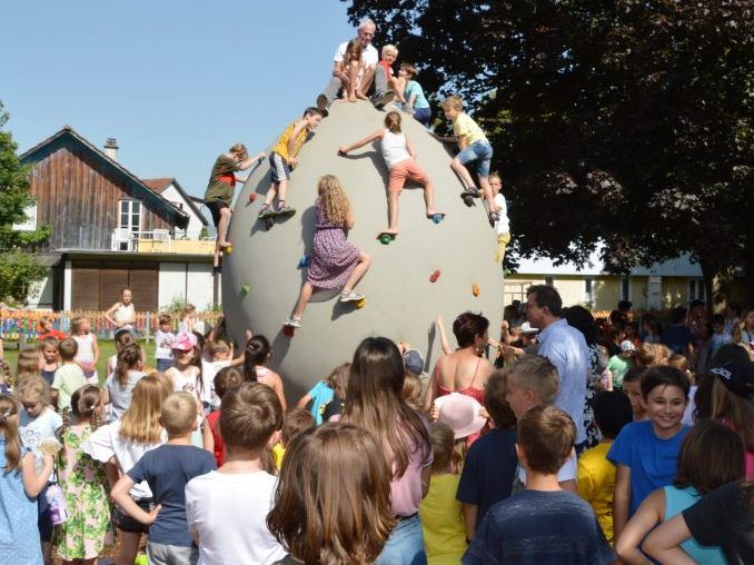3.07.2019 Wettschuld eingelöst: Die Schulkinder hatten sich das Ei im Rahmen des Vorarlberger Lesetags erlesen.