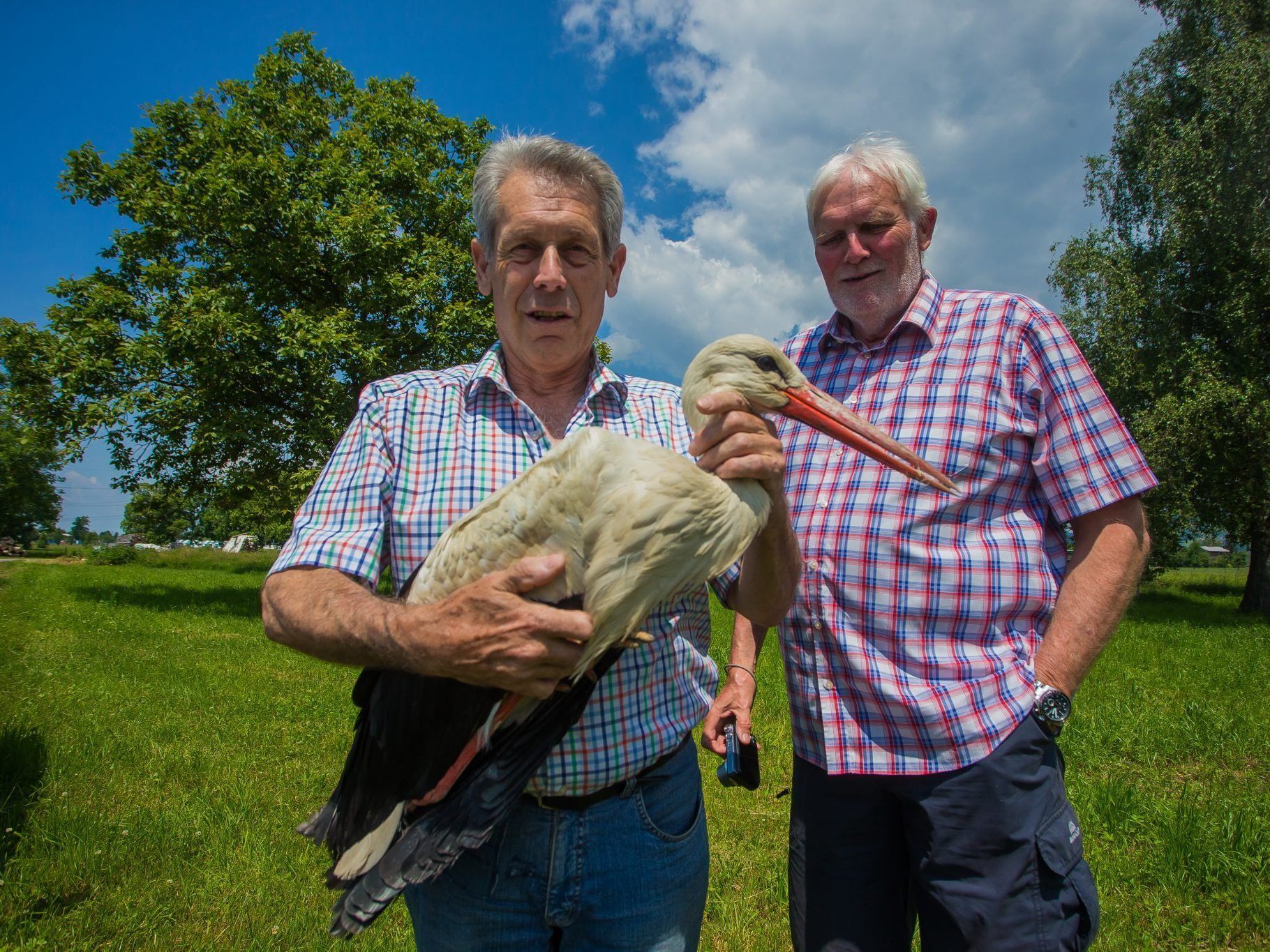 12.06.2021 Tierretter Karl Heinz Hanny päppelt schwer verletzten Storch auf.