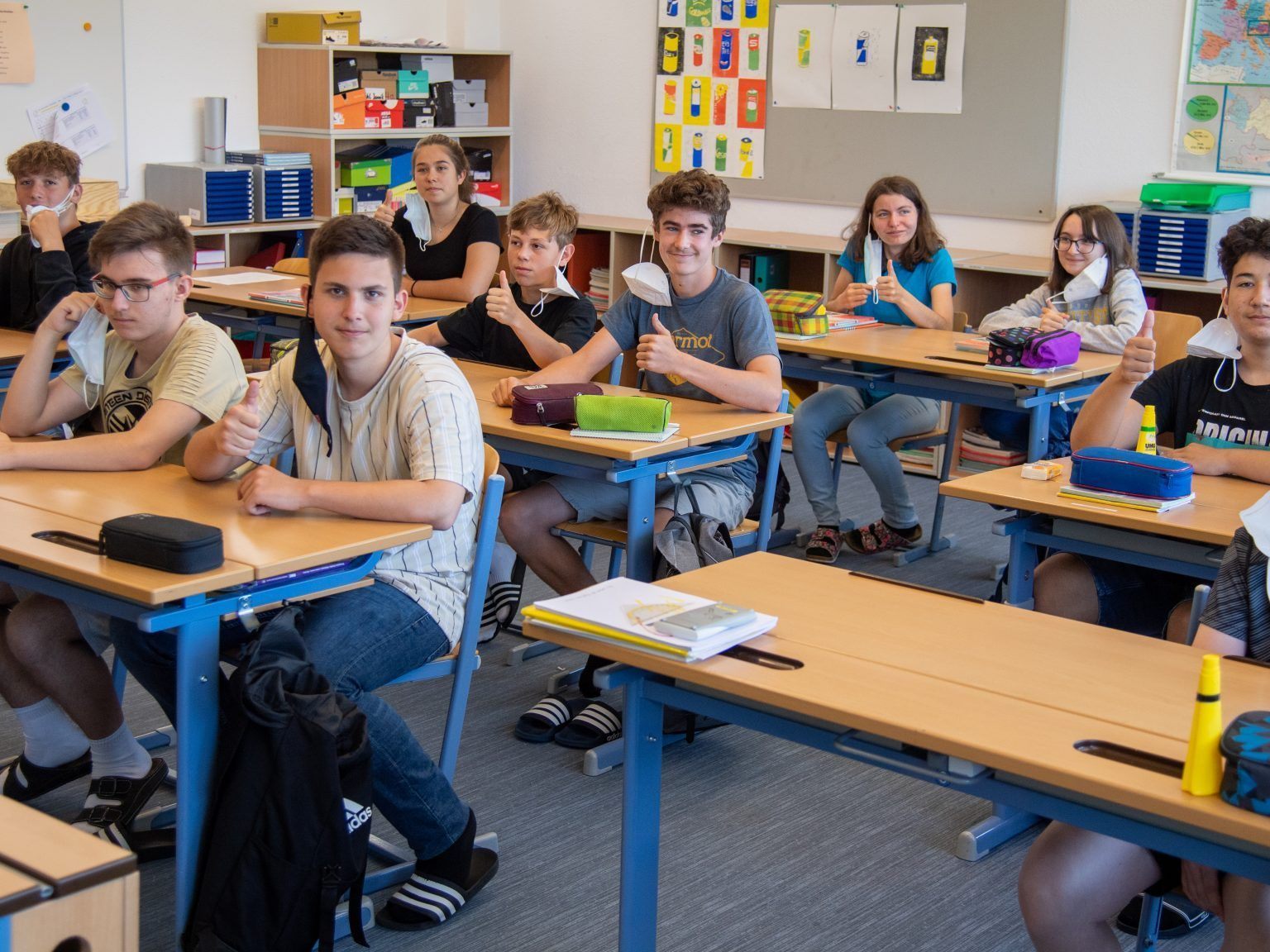Freude an den Schulen: Sonne da, Maske weg