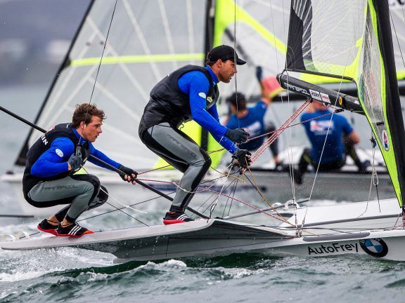 11.02.2020 Bei den Klassen-Weltmeisterschaften der Segler vor Geelong/Australien erwischten die 49er Benjamin Bildstein und David Hussl mit einem Wettfahrtsieg und zwei zweiten Plätzen einen guten Auftakt.