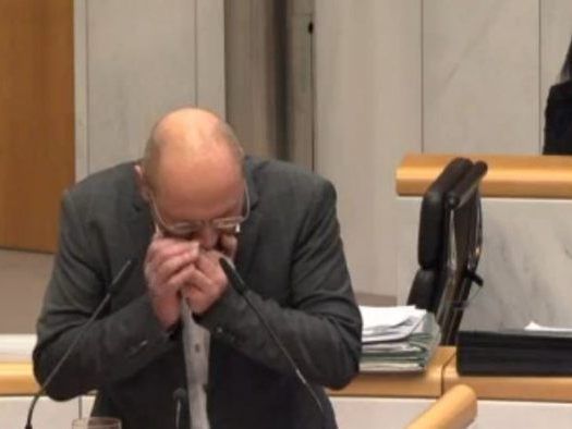 19.12.2019 Mit Mundharmonika ausgestattet begeisterte der Grüne Landtagsmandatar und Künstler Bernhard Weber am Mittwoch Landtagspräsident und -abgeordnete, als er den Blues „Mannish Boy“ anstimmte, der mit der umgedichteten Textzeile „I’m a man, I’m a politician“ schloss.