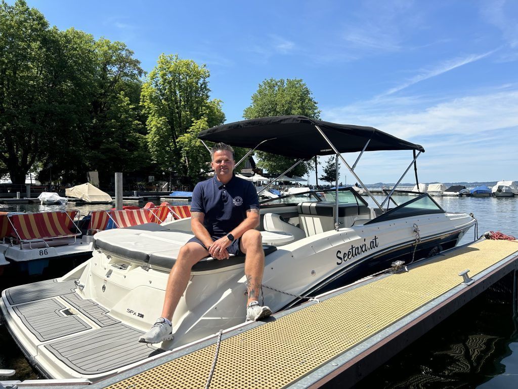 10.07.2024 Daniel Morscher ist kein gewöhnlicher Taxifahrer: sein Gefährt hat keine Räder, sondern einen Außenborder. Er fährt Festspielgäste mit dem Boot nach Bregenz.