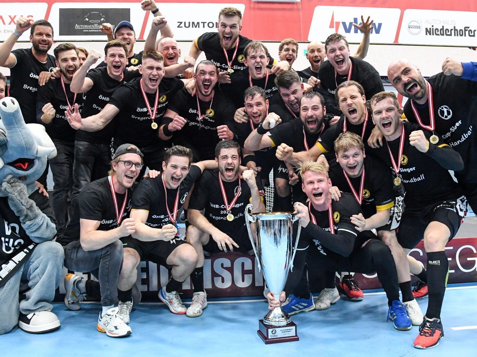 9.05.2022 Bregenz Handball nach 32:30-Finalerfolg über Schwaz zum fünften Mal ÖHB-Cupsieger.