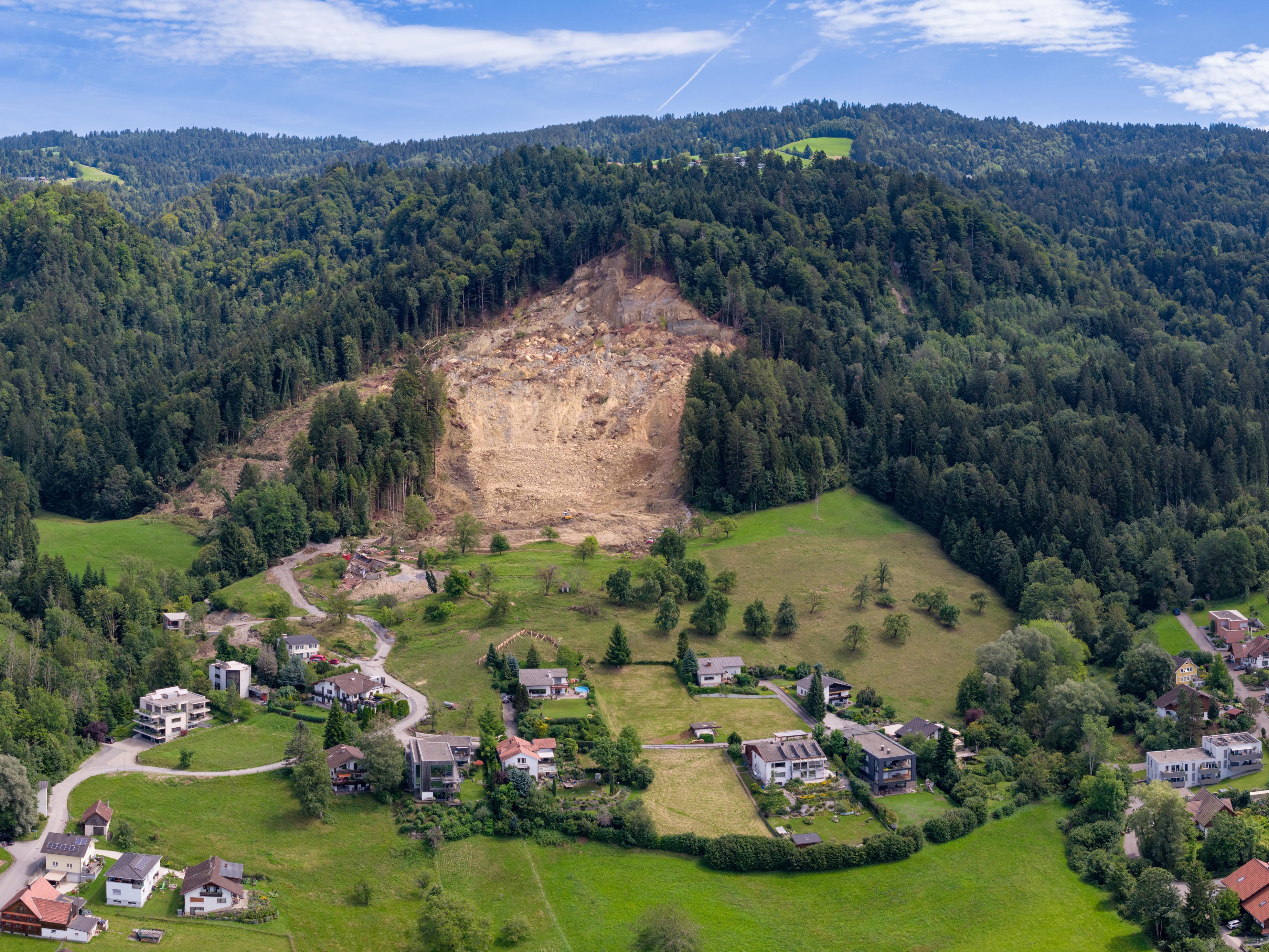2.08.2023 Nach den Regenfällen der letzten Tage hat sich der im April ins Rutschen geratene Hang erneut um mehrtere Meter bewegt.