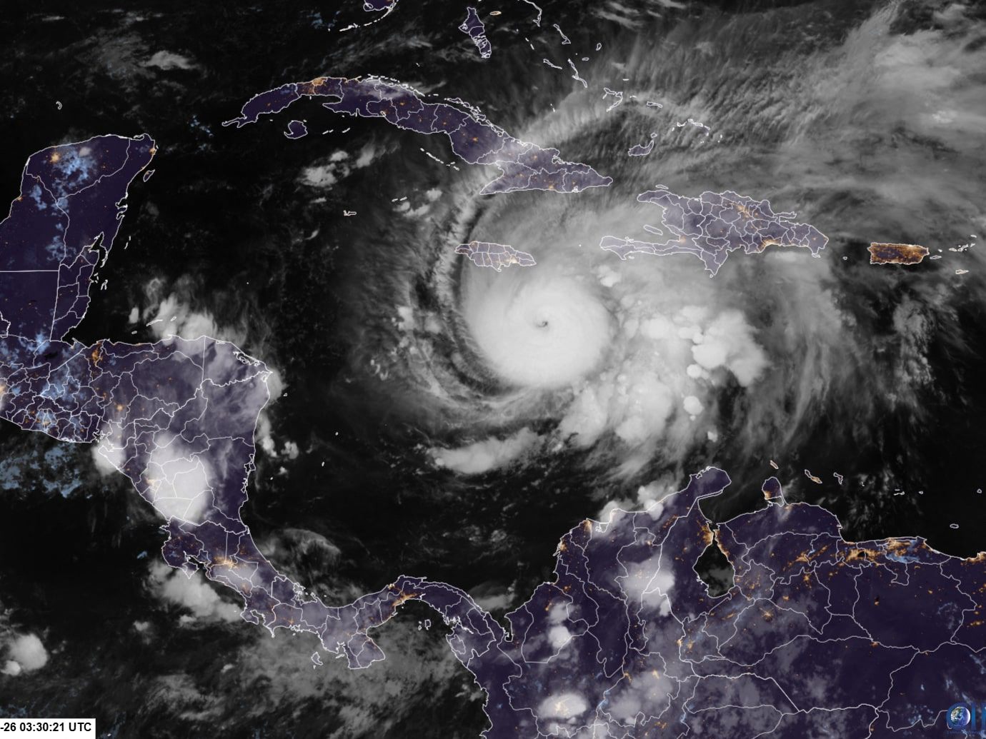 27.10.2025 Hurrikan "Melissa" hat vor der Küste der Karibikinsel Jamaika weiter an Kraft gewonnen und die höchste Hurrikan-Kategorie 5 erreicht.