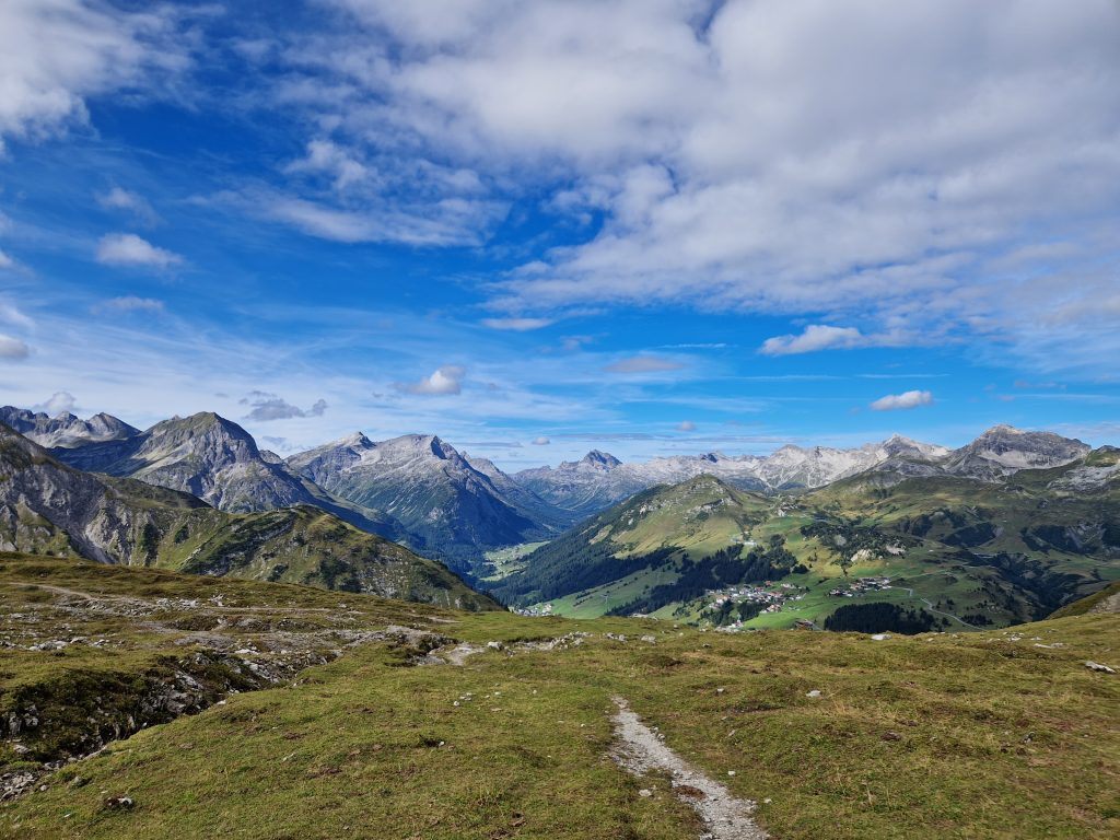 24.09.2023 Wanderführer Hertha Glück und Gerhard Vylet wandern ab Lech zum Wöstersattel, gehen zum Ochsengümple, steigen zum Rüfikopf und schweben mit der Bahn runter.