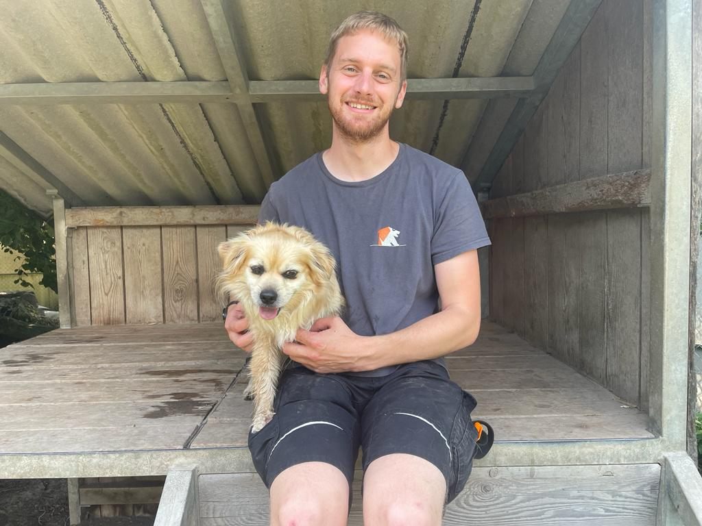 6.08.2023 Pekinese Aron, Kater Amigo, Löwenkopfkaninchen Hoppel und Wellensittich Mavi warten im Tierschutzheim Vorarlberg.