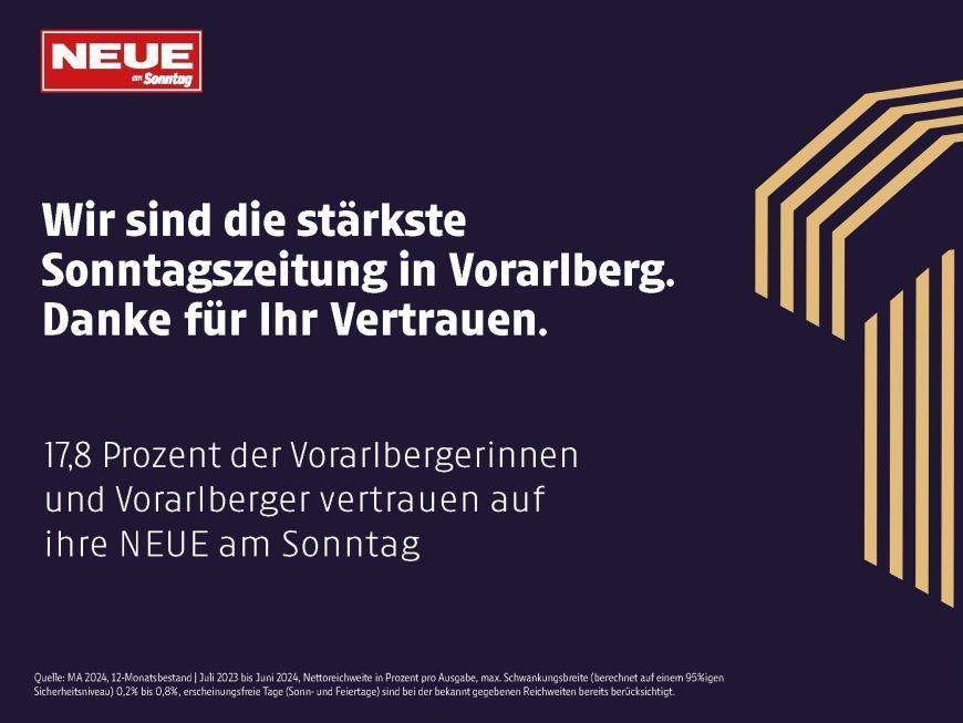 21.10.2024 Dankesworte kommen oft viel zu kurz, oder wenn man es mit einem fragwürdigen Sprichwort hält: „Ned gschumpfa isch gnuag globt“. Deswegen möchte ich mich an dieser Stelle einmal bei Ihnen, liebe Leserinnen und Leser, in aller Form bedanken.  Denn die jüngst veröffentlichten Reichweitenzahlen bescheinigen uns Ihr Vertrauen. Entgegen dem Branchentrend legt die NEUE am Sonntag