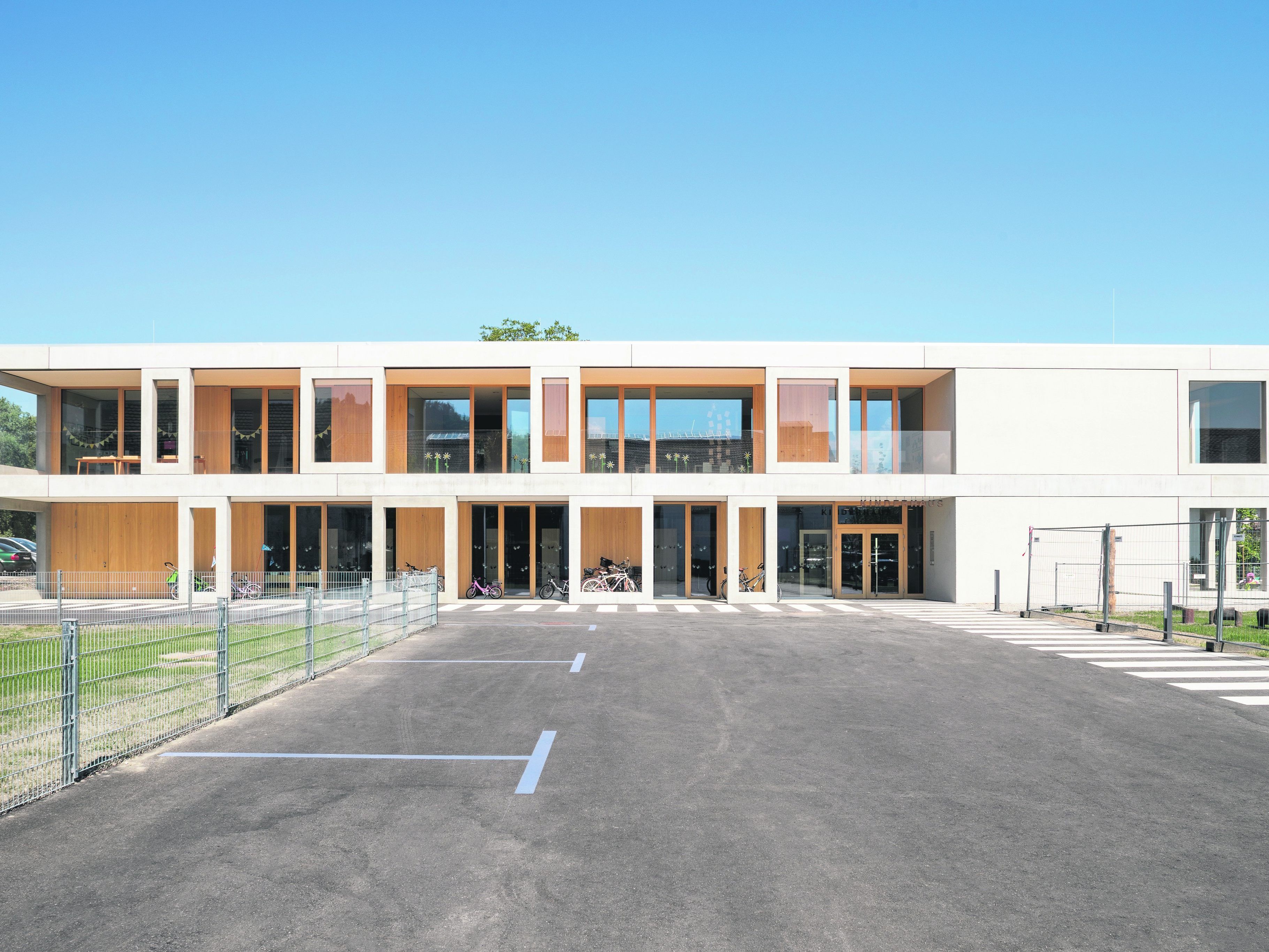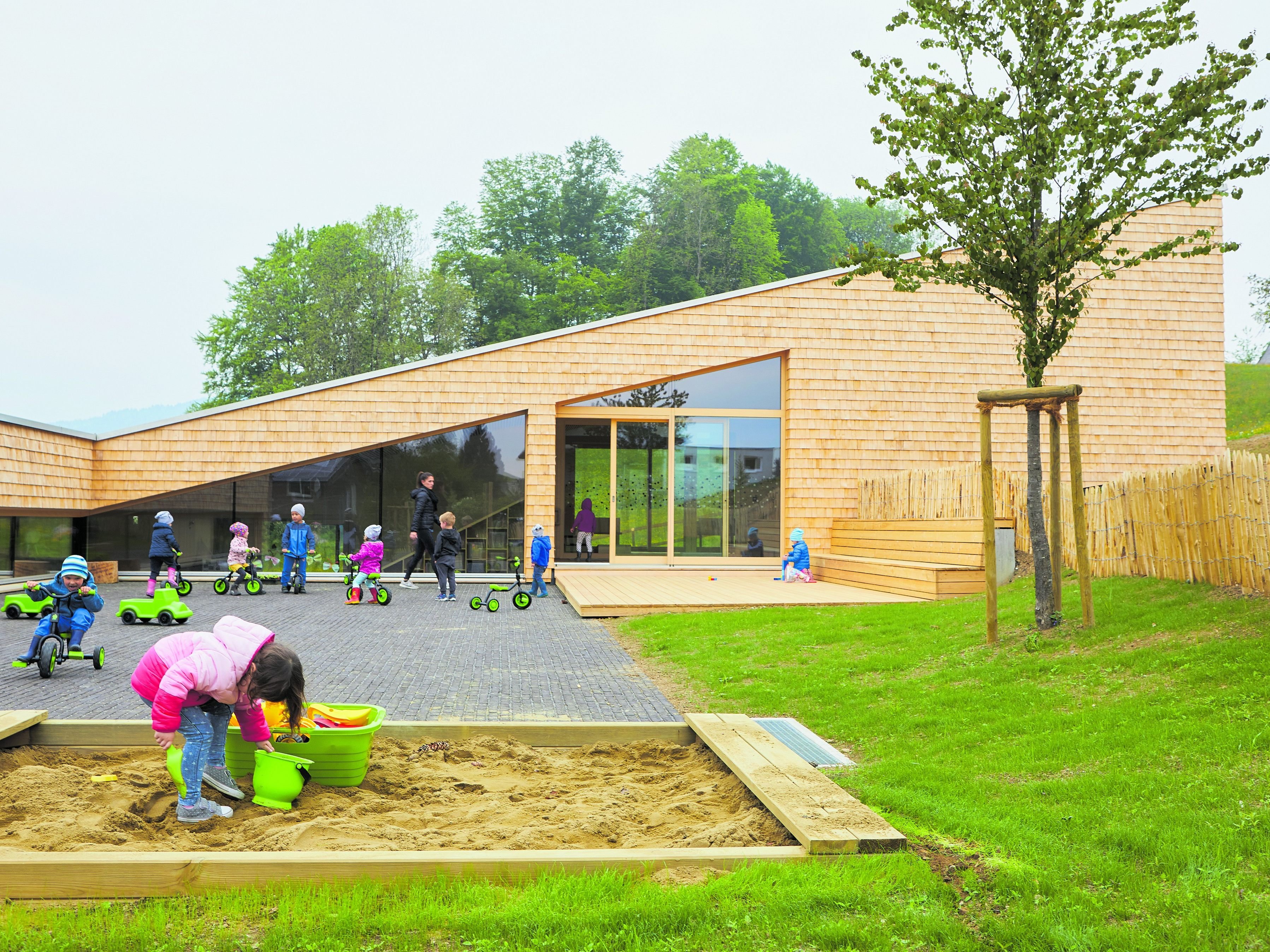2.06.2018 Mit der Rheinblickhalle und der Volksschule bildet das von Stöckler Gruber Architekten geplante Kinderhaus ein zweites Zentrum von Gaißau.