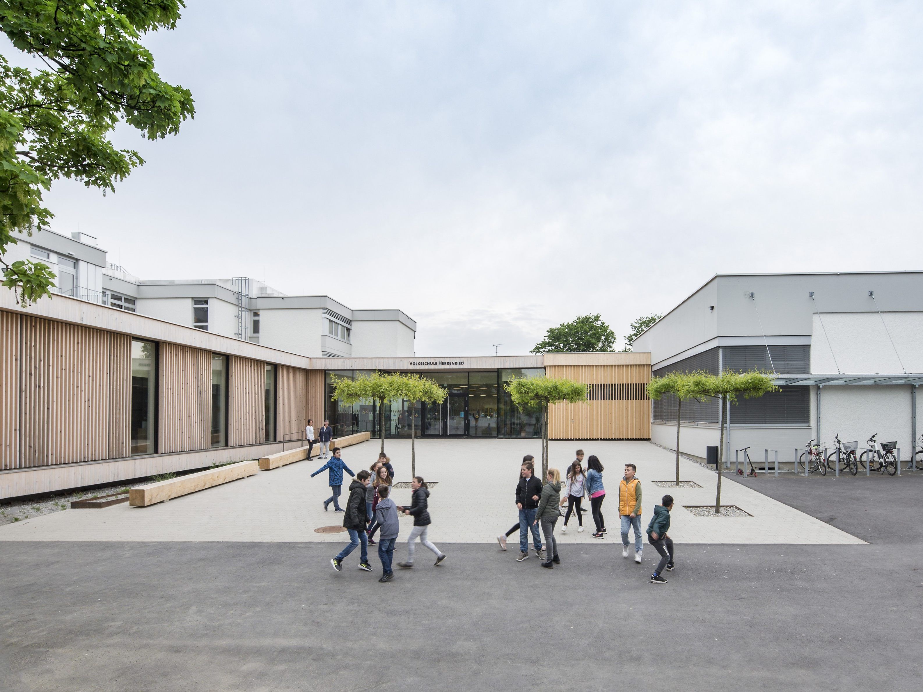 30.06.2018 Die Volksschule Herrenried in Hohenems stammt aus dem Jahr 1968. Die Architekten Dorner\Matt sanierten und erweiterten sie kongenial mit einem eingeschoßigen Leichtbau aus Holz.