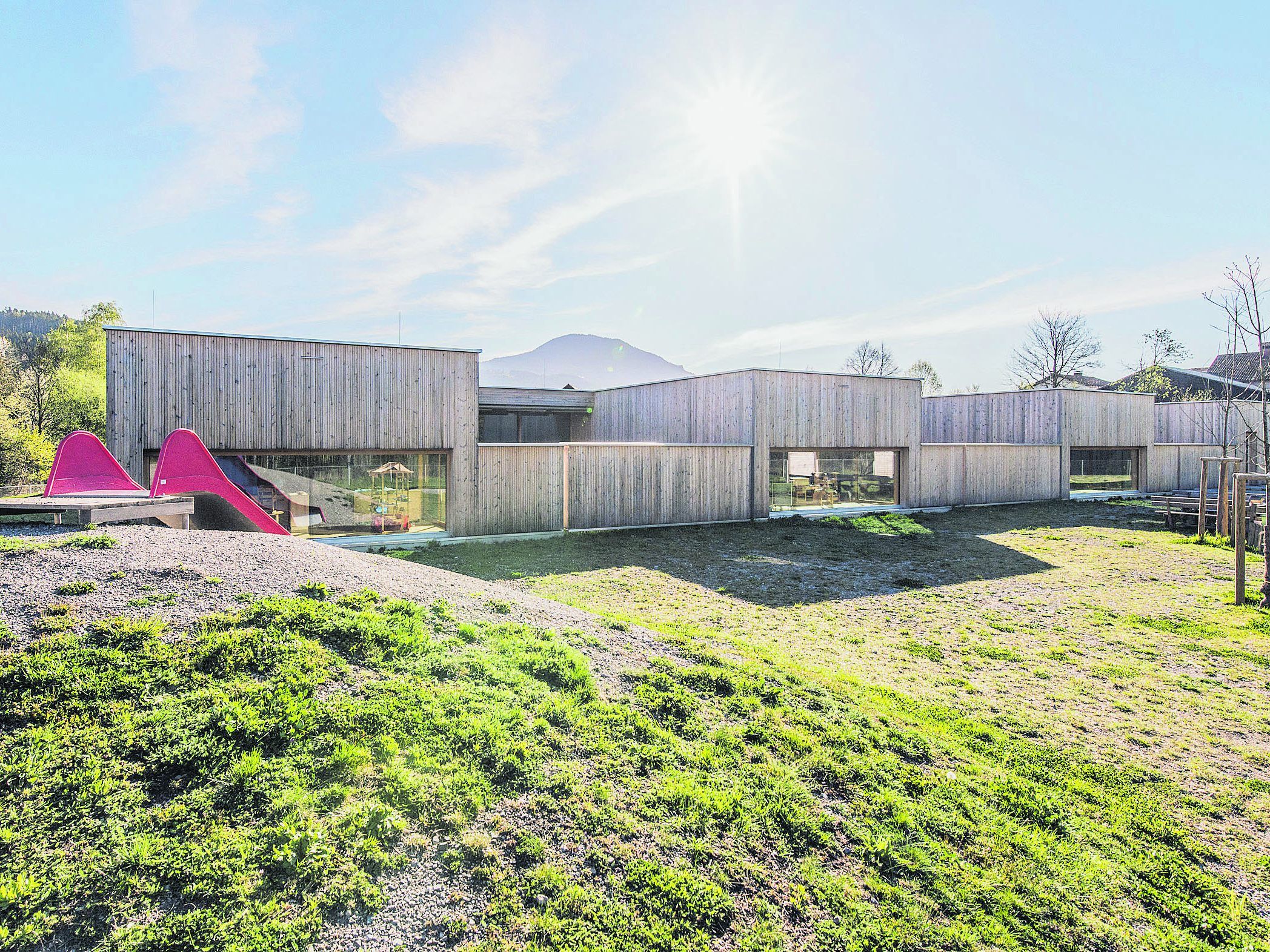20.06.2020 Auf einem großen Grundstück von Göfis planten Marte.Marte Architekten ein schönes, eingeschoßiges Kinderhaus aus Holz.