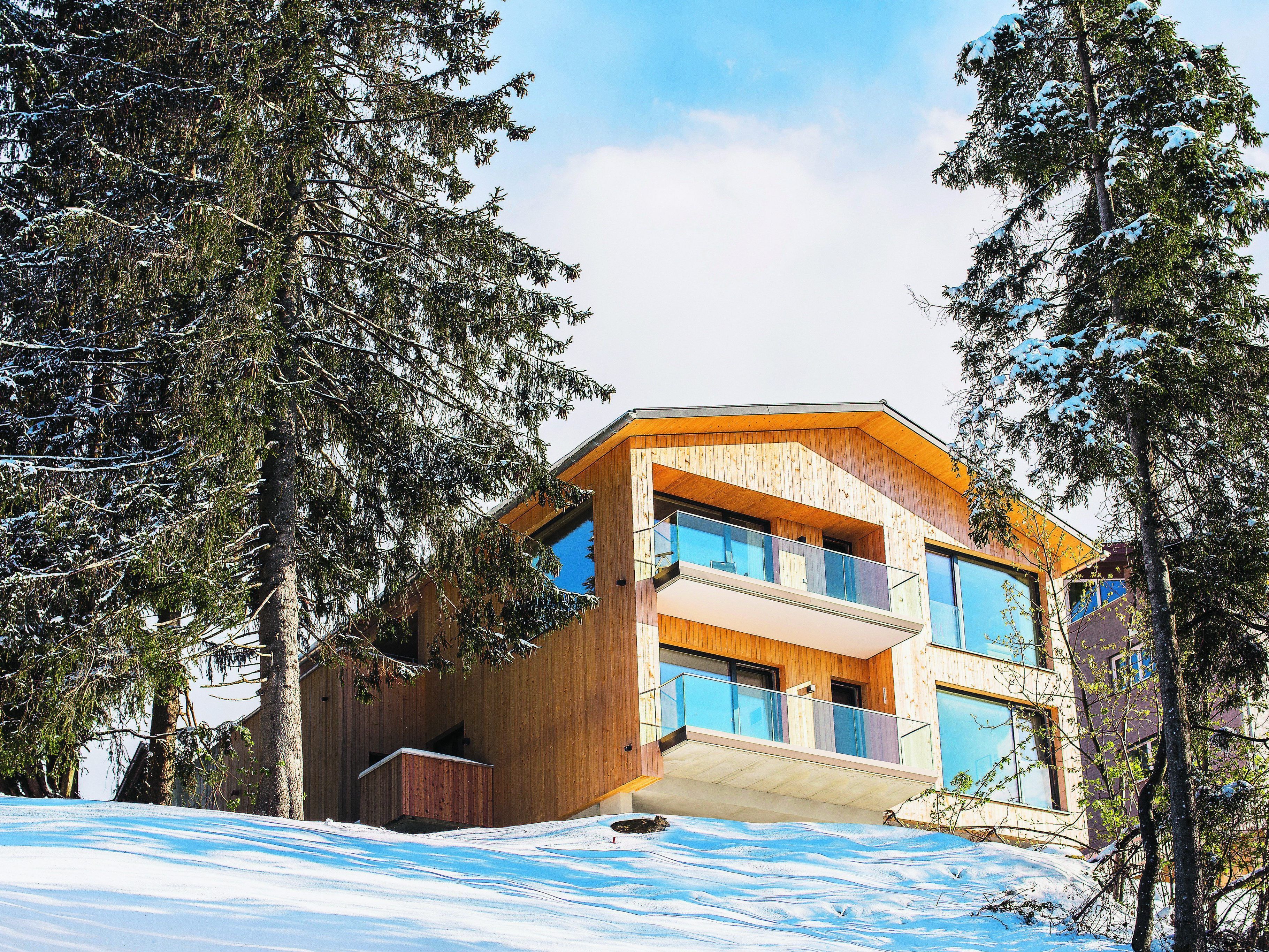 23.02.2019 Eine sehr heutige Interpretation des traditionellen Wälderhauses hat Catharina Fineder in einen steilen Hang hoch über Riefensberg gestellt.