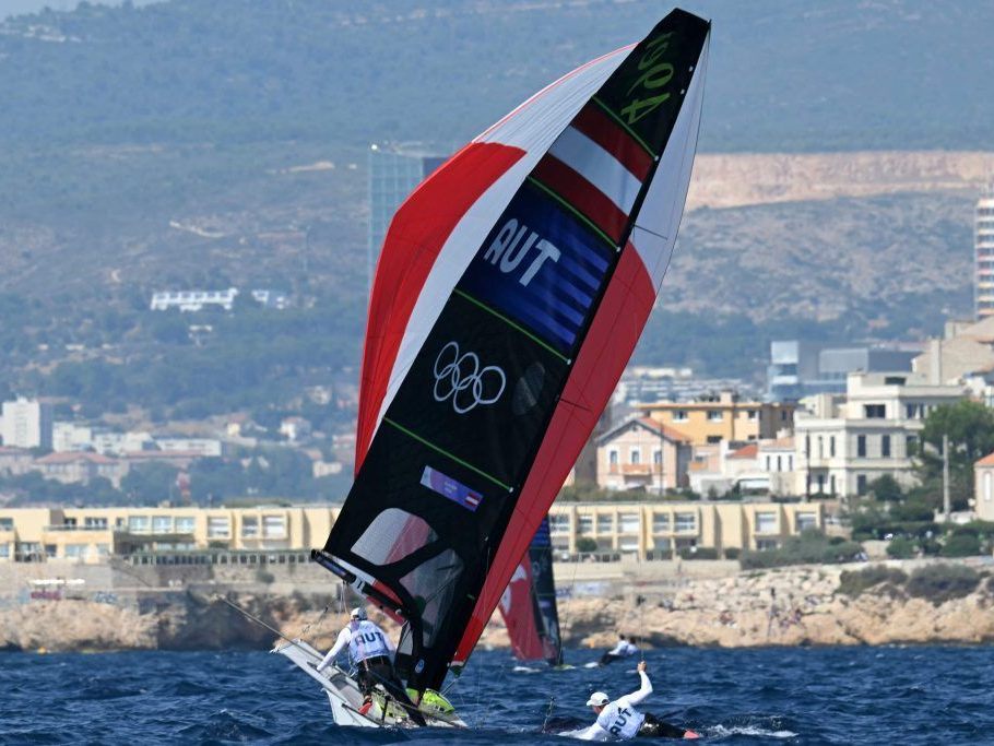 31.07.2024 Österreichs 49er-Crew Benjamin Bildstein/David Hussl ist bei den olympischen Bewerben vor Marseille deutlich am Medal Race vorbeigesegelt.