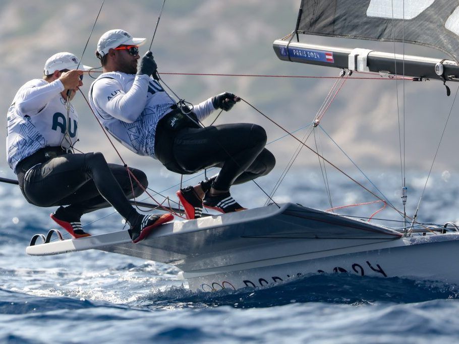 30.07.2024 49er-Segler liegen nach dem ersten Wettkampftag in Schlagweite zu den Medaillen.