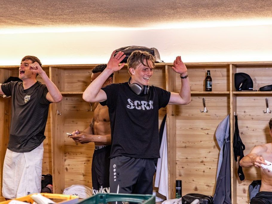 13.05.2024 Die Spieler feierten das vollbrachte Ziel: Klassenerhalt. Erst am Platz, dann in der Kabine, später im Bus und schließlich . . .