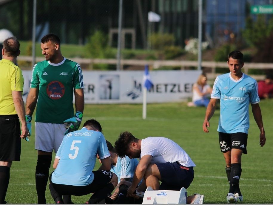 3.06.2018 Nach einem Zusammenprall wurde SK Meiningen Tormann Heinrich Schurian mit schweren Verletzungen ins Spital gebracht.