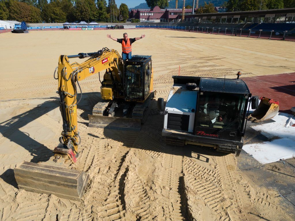 7.10.2023 Eric Hardman ist Geschäftsführer von „rasen­plan“. Seine Firma baut im Bregenzer Fußballstadion die neue Rasenheizung ein.