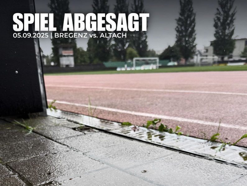 5.09.2025 Die Wetterverhältnisse lassen kein Spiel in Bregenz zu. Liveübertragung von Ländle TV entfällt.