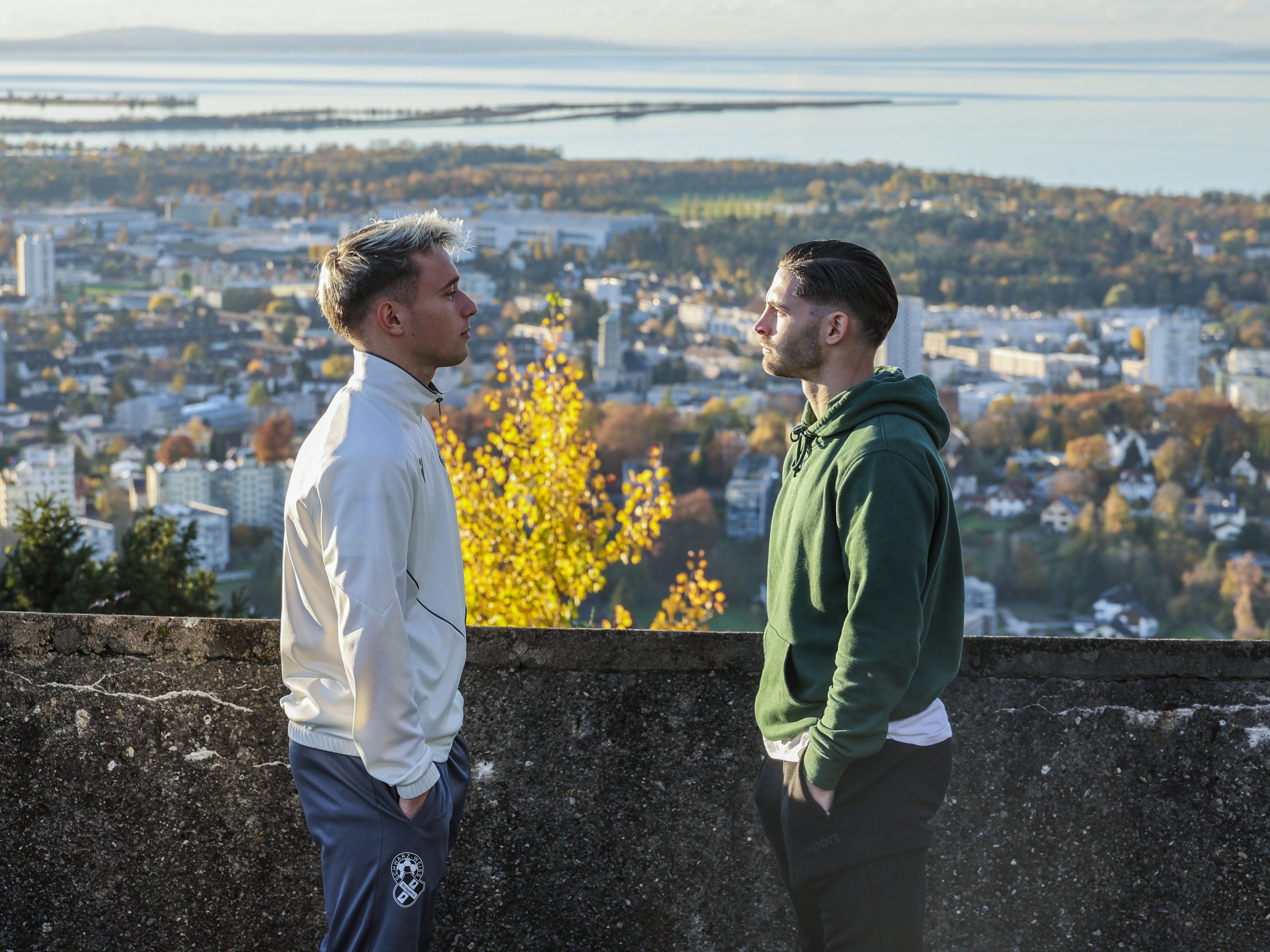 5.11.2025 Ein Blick vom Gebhardsberg, zwei Geschichten, ein Derby: Am Samstag (14.30 Uhr) steigt das 36. Aufeinandertreffen zwischen Schwarz-Weiß Bregenz und Austria Lustenau. Raul Marte und Mario Vucenovic blicken mit besonders vielen Emotionen auf diese Partie, weil sie beide Seiten kennen.