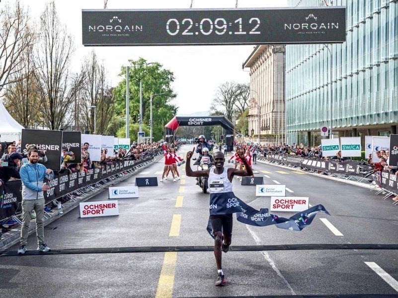 11.08.2023 Günter Ernst, Rennleiter beim Sparkasse 3-Länder-Marathon, bringt den Zürich-Sieger nach Bregenz.