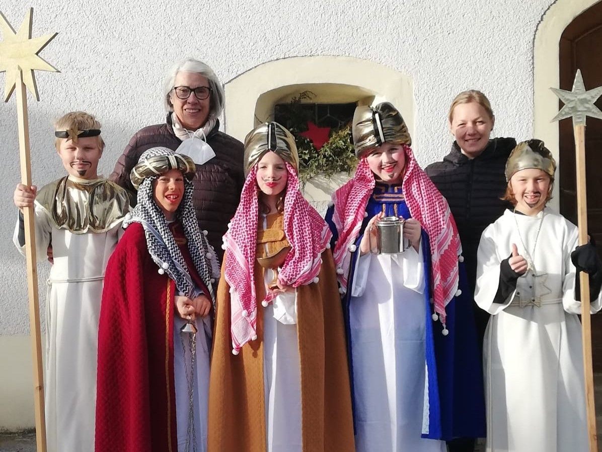 5.01.2023 Martina Erath möchte den Kindern in Amerlügen den Brauch der Heiligen der Könige näherbringen.