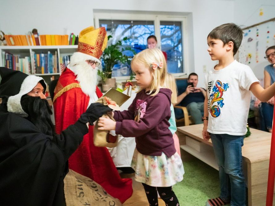 6.12.2023 Nikolaus und Knecht Ruprecht sind in Wolfurt unterwegs, um die Kinder am Nikolausabend zu besuchen. Gemeinsam ziehen sie sich um und bereiten sich auf die Reise von Haus zu Haus vor, um dort in strahlende Kinderaugen zu blicken.