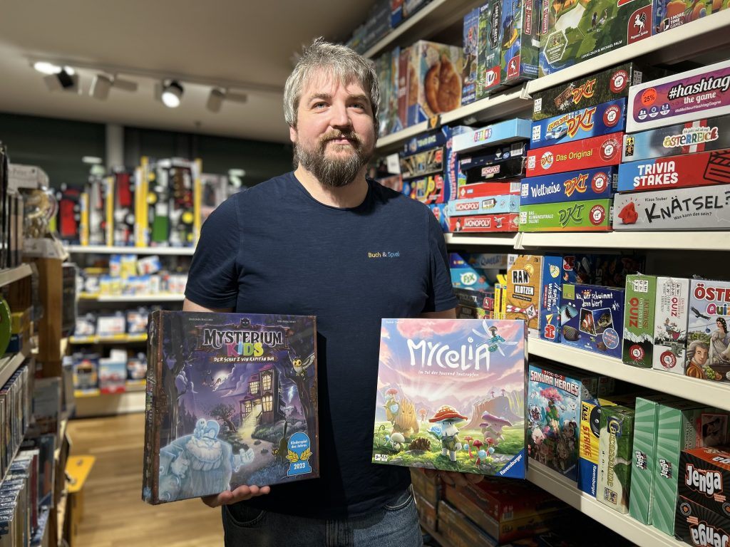 11.12.2023 Spieleabende sind eine willkommene Abendbeschäftigung für Jung und Alt in dieser dunklen Jahreszeit. Manuel Lebar, Filialleiter bei Buch und Spiel in Schruns gibt Tipps, welche Spiele besonders spannend sind.