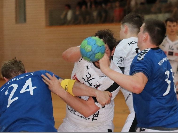 Handball Feldkirch jubelt nach dem 29:26-Heimsieg gegen Spitzenreiter HC Hohenems über den Klassenerhalt in der Baden Württemberg Landesliga Staffel 3. Hohenems muss die Meisterfeier und den möglichen Aufstieg in die Württembergliga um eine Woche verschieben. Mit einem Remis gegen Lauterstein (7.) am Sonntag, 17 Uhr, Herrenriedhalle, kann Hohenems den Meistertitel aber fixieren. Feldkirch jubelte im Derby gegen Hohenems – Enttäuschung bei den vielen mitgereisten Fans aus der Grafenstadt. Und am Ende war es ein verdienter Heimerfolg für die Blau-Weißen mit einem wahrlichen Kraftakt und großem Kämpferherz von Philipp Franz und Co. Vor allem die vielen Eigenbaus rund um Florian Hintringer steigerten sich in einen wahren Spielrausch.