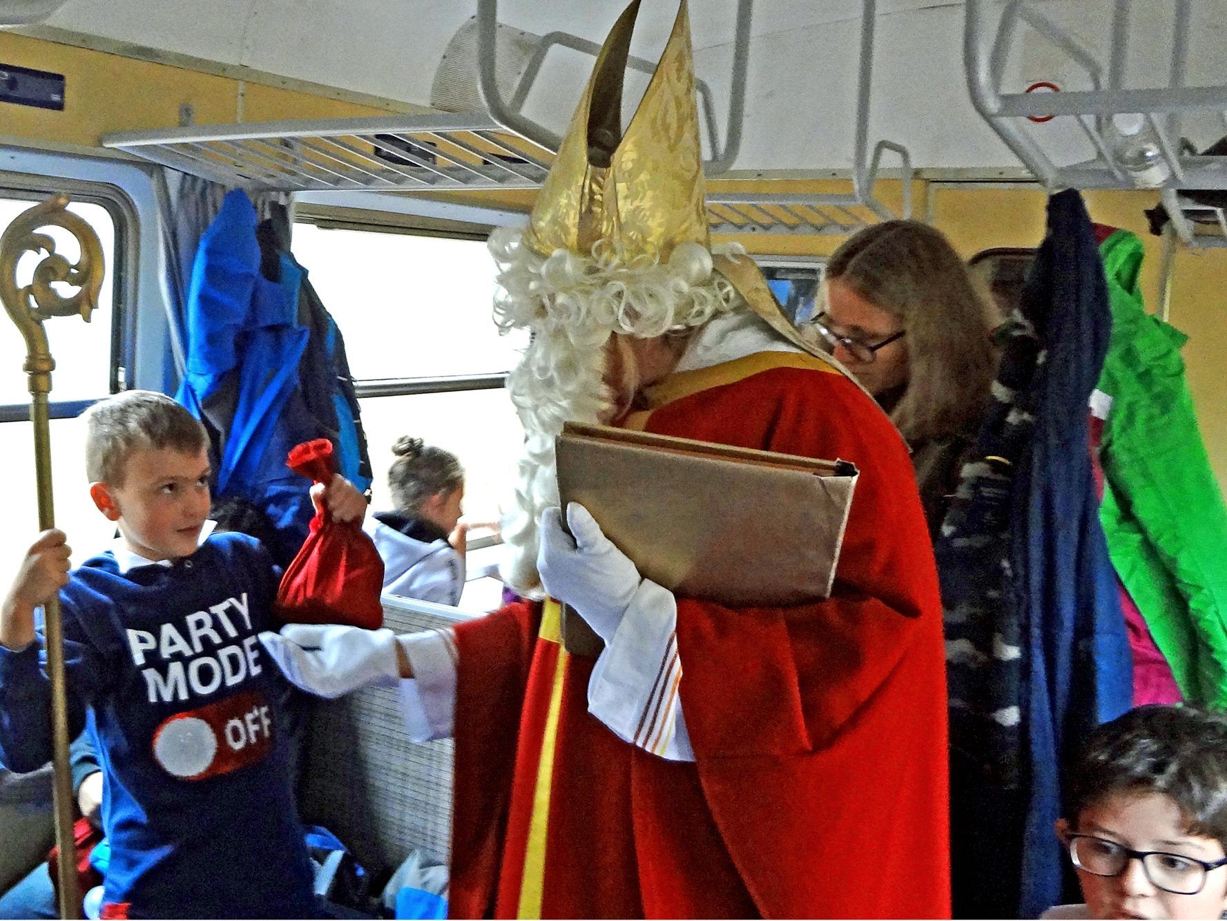 Heuer durften die Kinder der VS-Obdorf ein ganz besonderes Erlebnis erfahren, denn der Nikolaus besuchte sie nicht wie die Jahre zuvor in der Schule, sondern während der Zugfahrt mit dem Wälderbähnle.