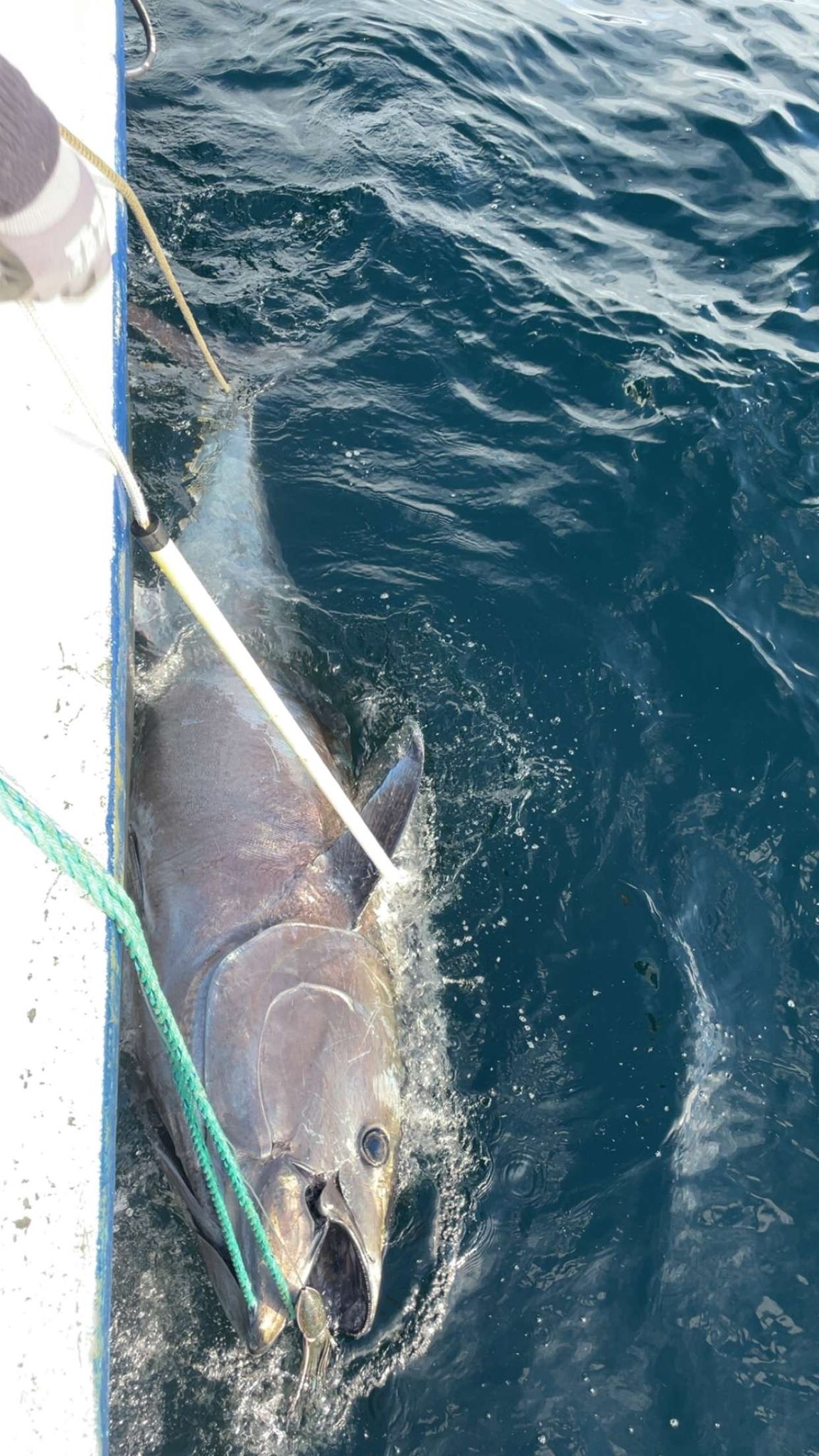 Der Fisch war am Ende 2,40 Meter lang und wog exakt 280 Kilogramm. Geködert wurde er mit einem 20 Zentimeter langen Gummiköder in Tintenfischform.