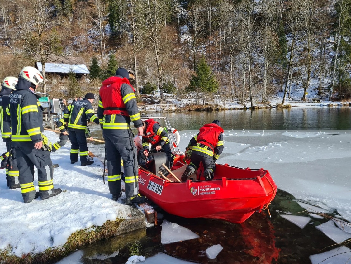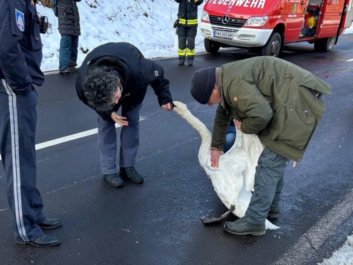 In Grünau im Almtal (Bezirk Gmunden) hat die Freiwillige Feuerwehr am Sonntag einen Schwan aus dem zugefrorenen Almsee gerettet. In der Nacht war der Bereich rund um den Vogel vollständig zugefroren. "Das Tier war zwar nicht festgefroren, konnte sich jedoch aufgrund der rutschigen Eisschicht nicht selbst befreien", informierte die Feuerwehr.