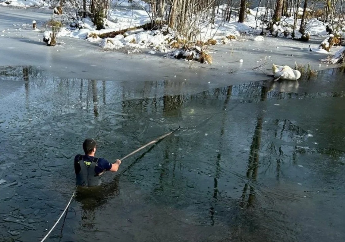 Am Vormittag gelang es den Einsatzkräften, das Eis in Richtung Ufer aufzubrechen und den Schwan dorthin zu treiben. Er wurde am Ufer eingefangen, von Wildtierbiologen untersucht und anschließend wieder in die Freiheit entlassen.