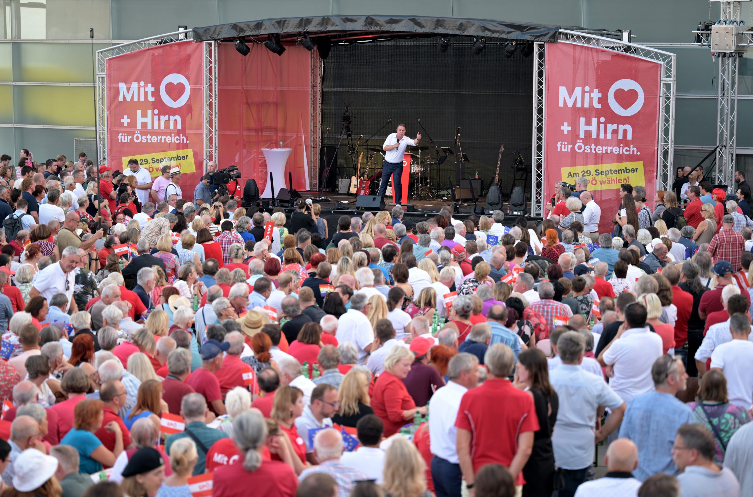 Neben dem oberösterreichischen Landeschef Michael Lindner als Gastgeber hatten sich u.a. auch der niederösterreichische Landesvorsitzende Sven Hergovich, Wiens Bürgermeister Michael Ludwig und die Zweite Nationalratspräsidentin Doris Bures, die zuletzt mit Kritik an einem Entwurf zum Wahlprogramm aufgefallen war, vor der Ars Electronica eingefunden. Ihnen allen teilte Babler in seiner wie üblich emotionalen gut einstündigen Rede mit: "Wir werden in Österreich überraschen wider alle Umfragen, wider alle Kommentare". Das mittlerweile bekannte Medien-Bashing fand dann auch weiteren Raum in der Ansprache des Spitzenkandidaten.