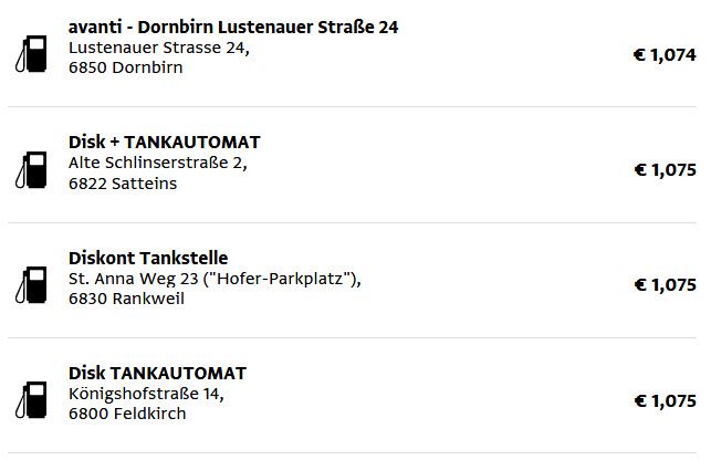 Dieselpreise in Vorarlberg am Dienstagmorgen