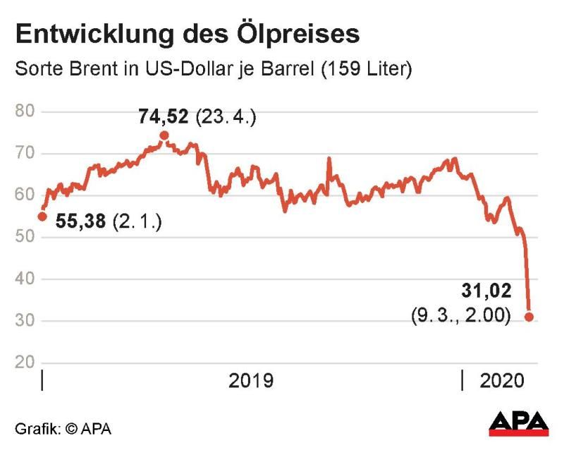 Nach gescheiterten Verhandlungen führender Förderstaaten über eine Drosselung der Produktion befürchten Investoren einen Preiskrieg. Zudem belastet die Coronakrise immer mehr. Die internationalen Börsen brachen am Montag ein.